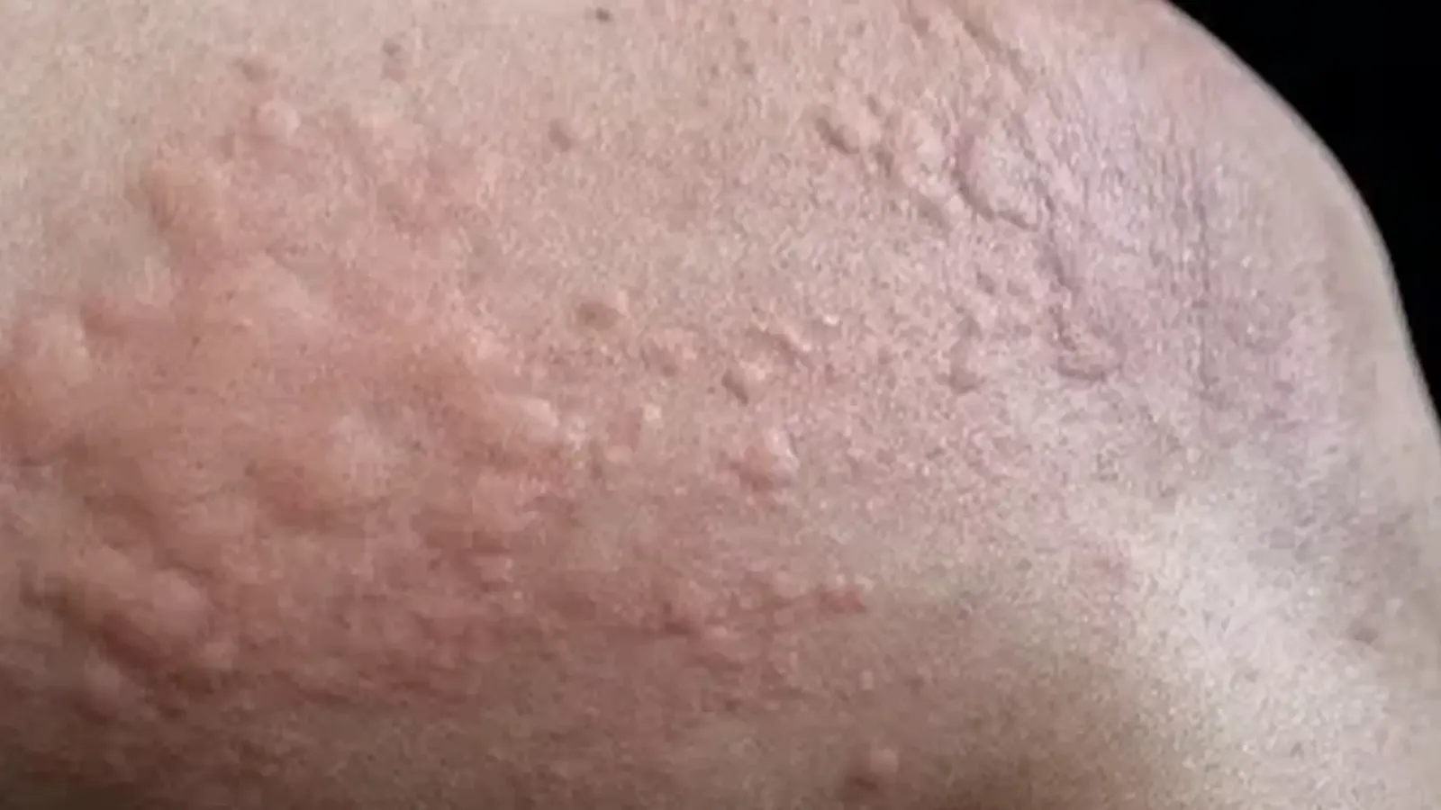 Hives, also known as urticaria, are a common skin reaction that appears as red, itchy welts or bumps on the skin. These welts can vary in size, from a few millimetres to several centimetres, and may change shape, move around, or disappear and reappear within hours.